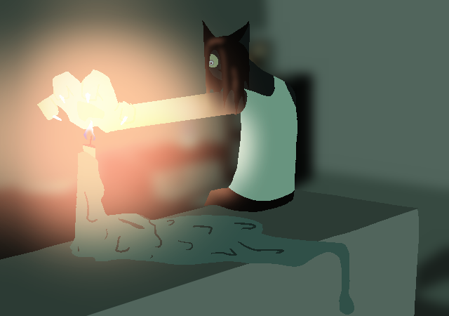 There's alot of smoke it this room, if you put out the candle maybe the room might look less a forest fire.